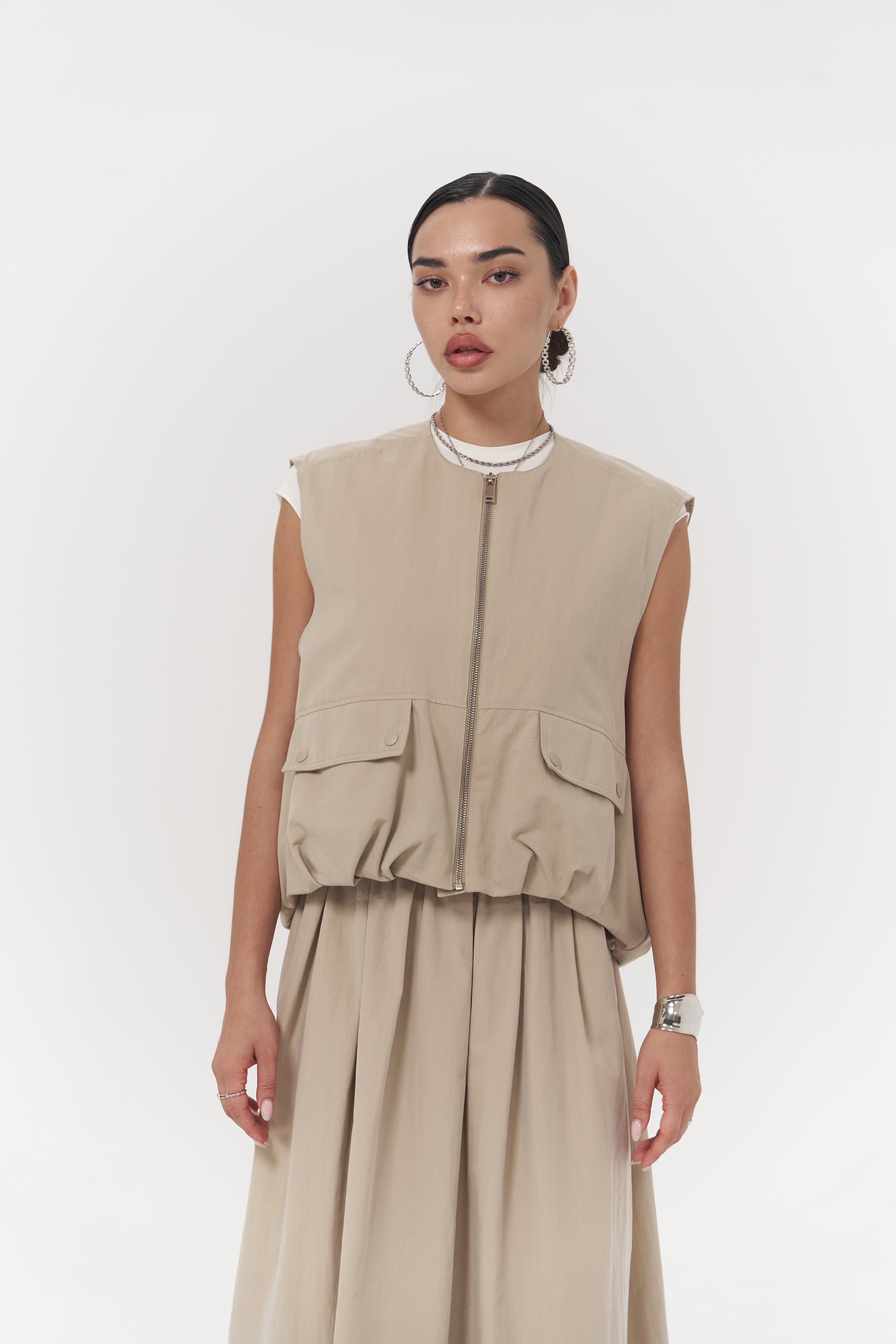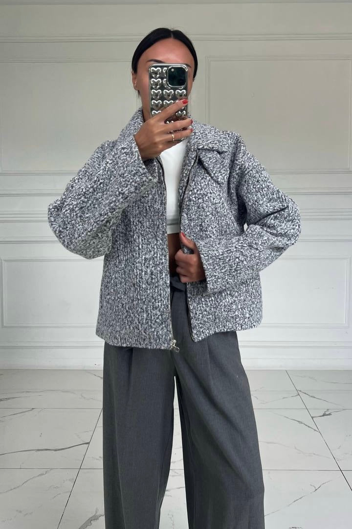 Oversized Funnel Collar Zip-Up Cropped Jacket