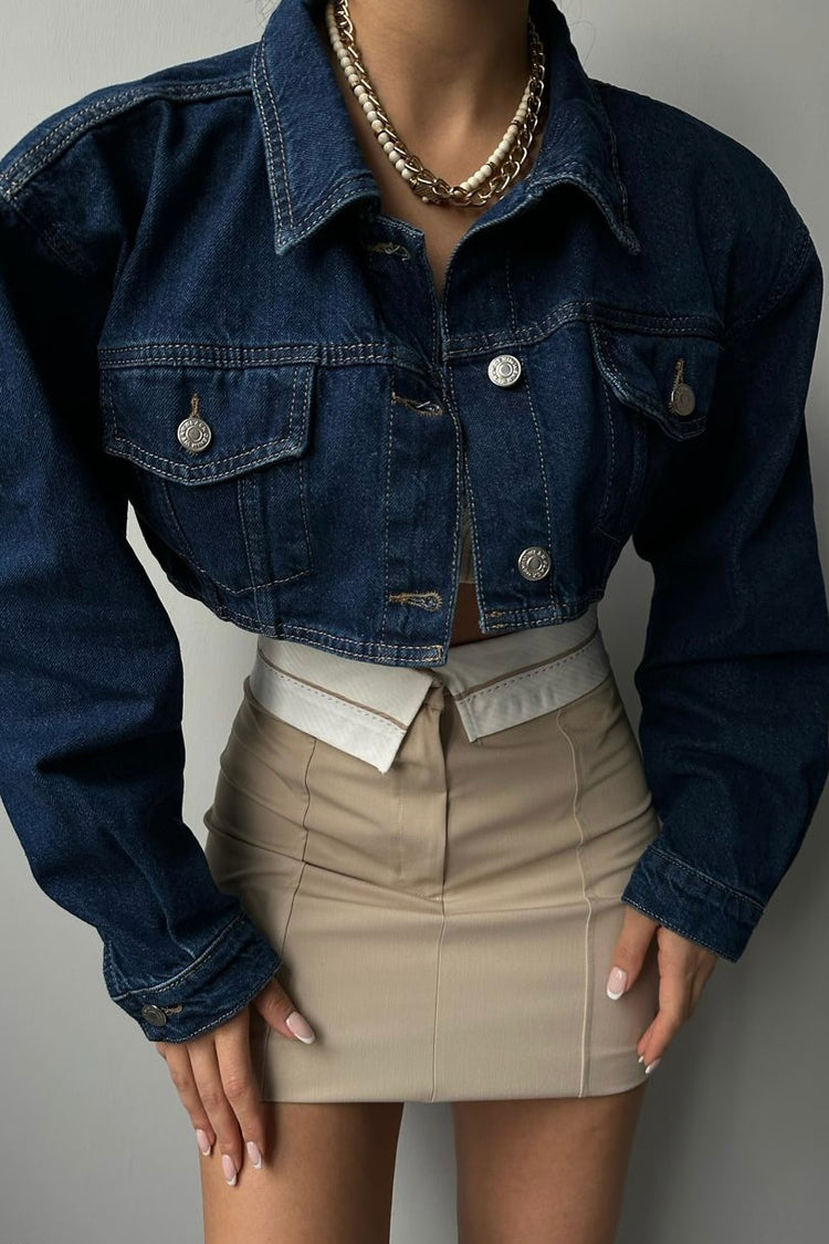 Padded Shoulder Crop Jean Jacket