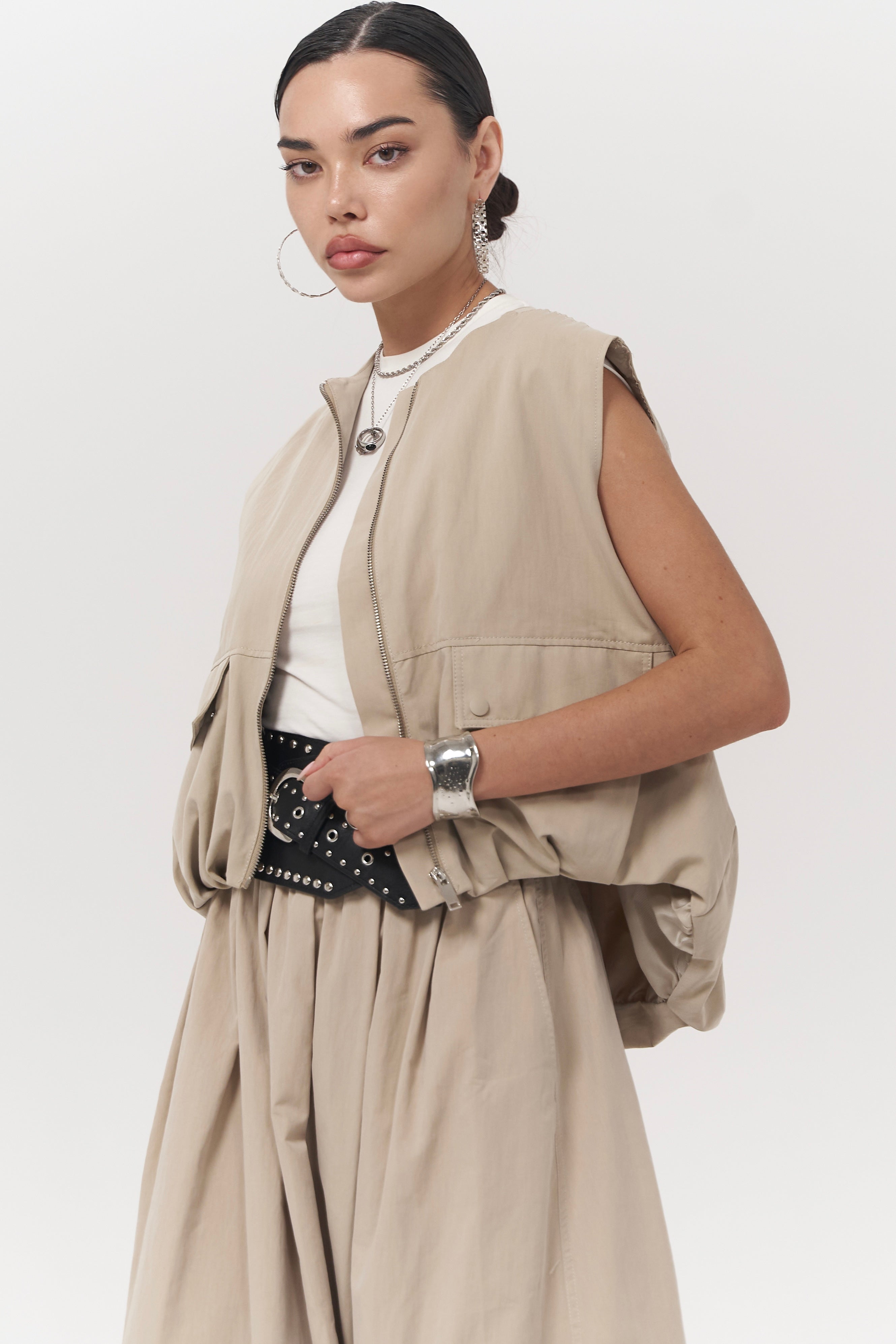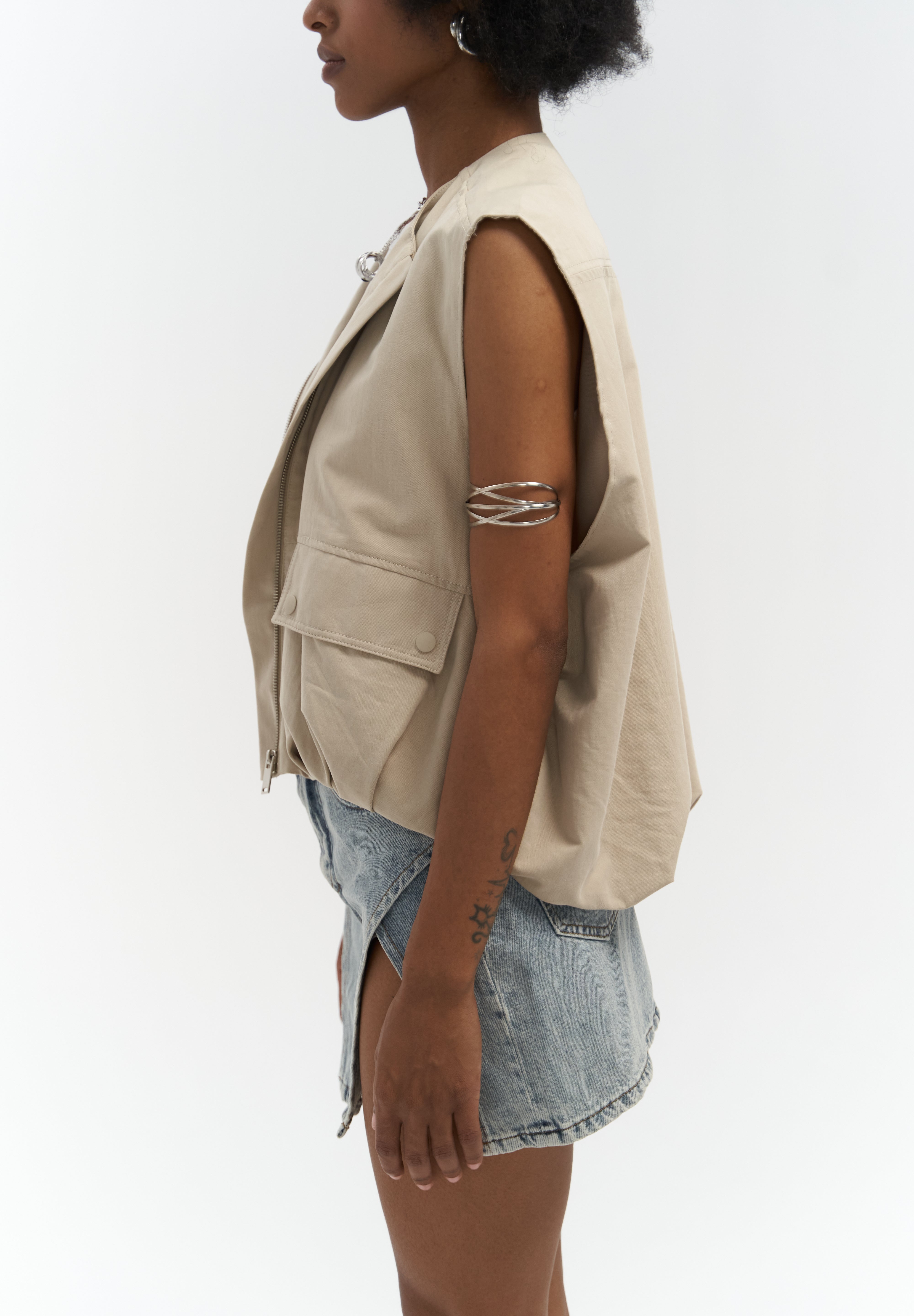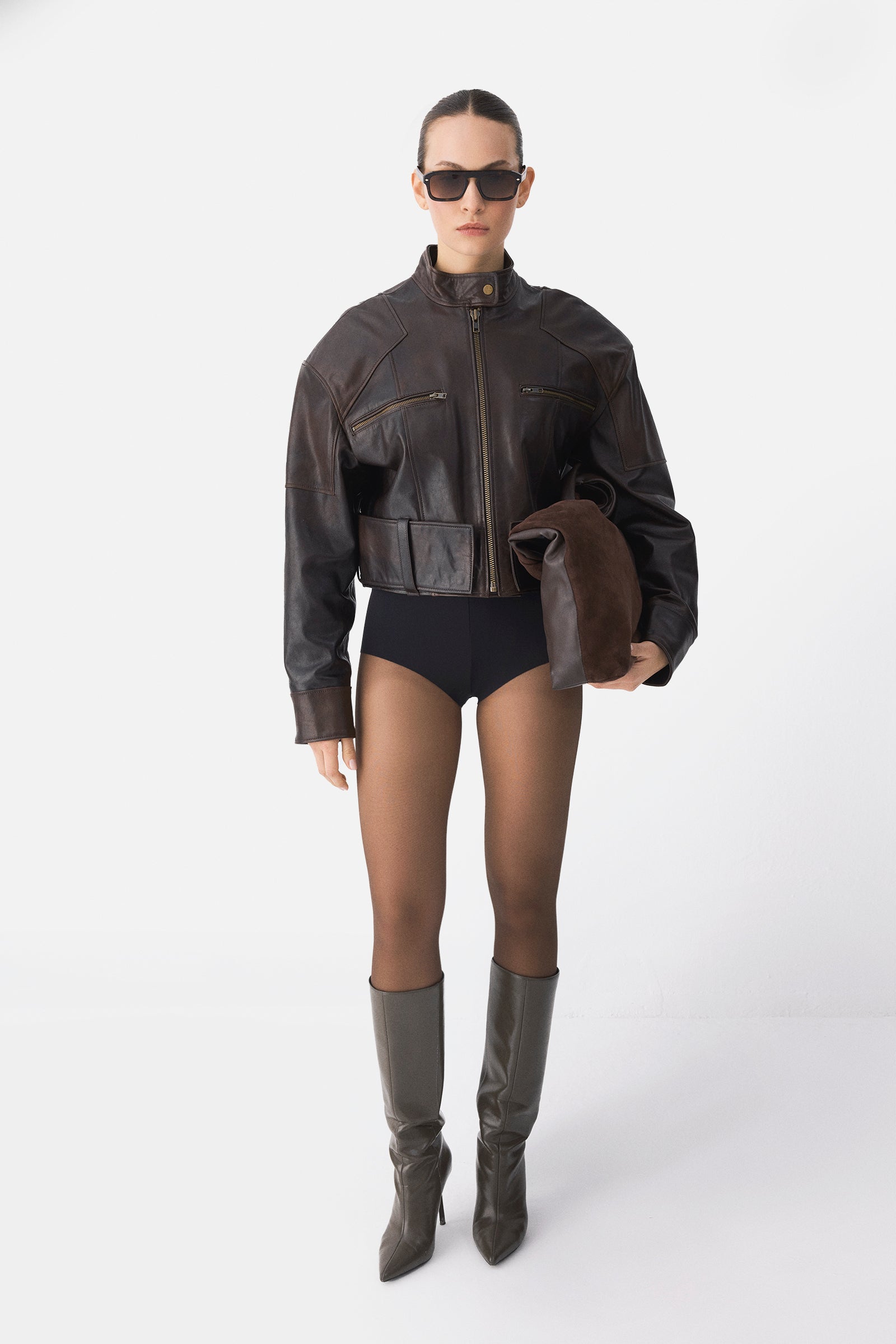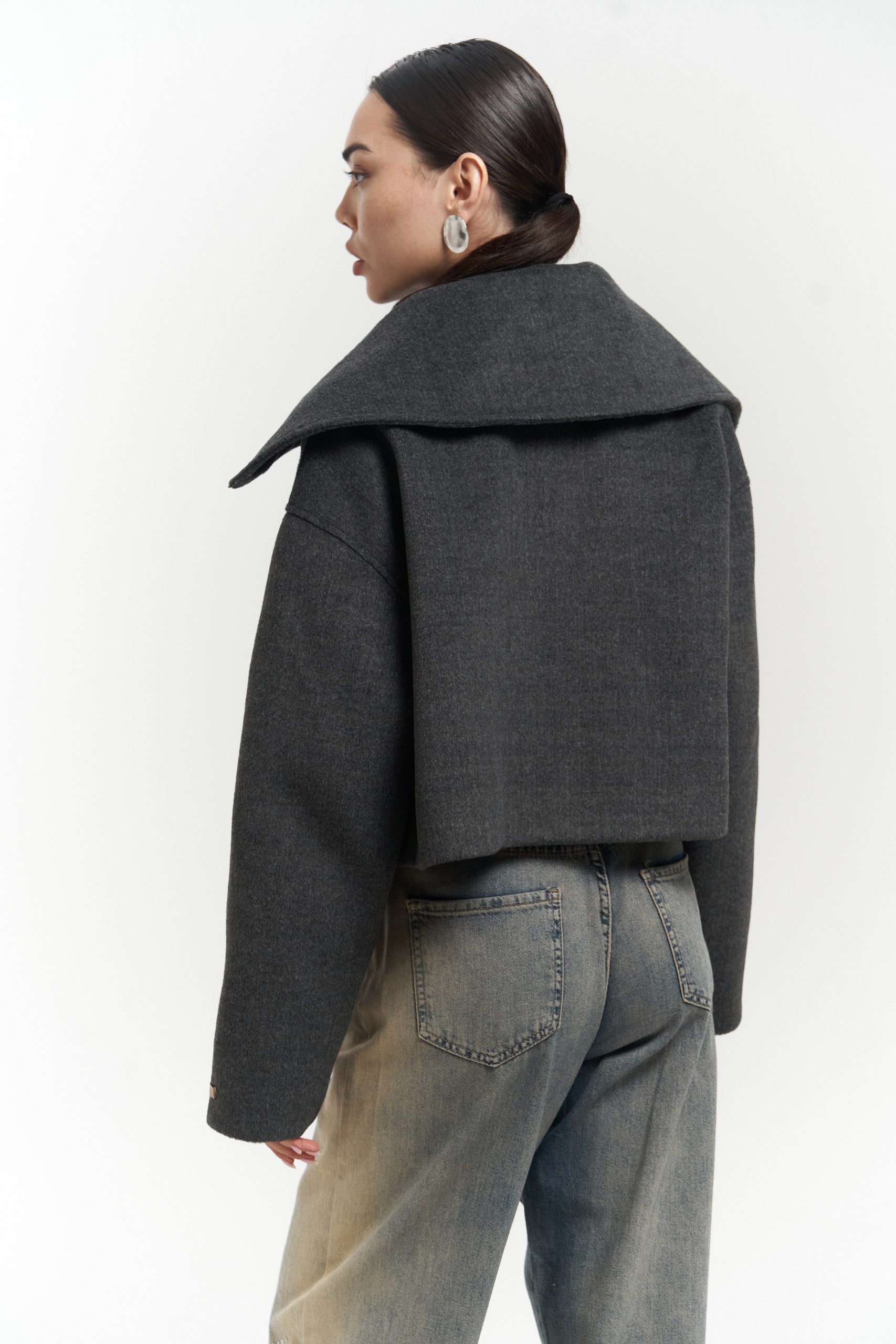 Oversized Funnel Collar Zip-Up Cropped Jacket