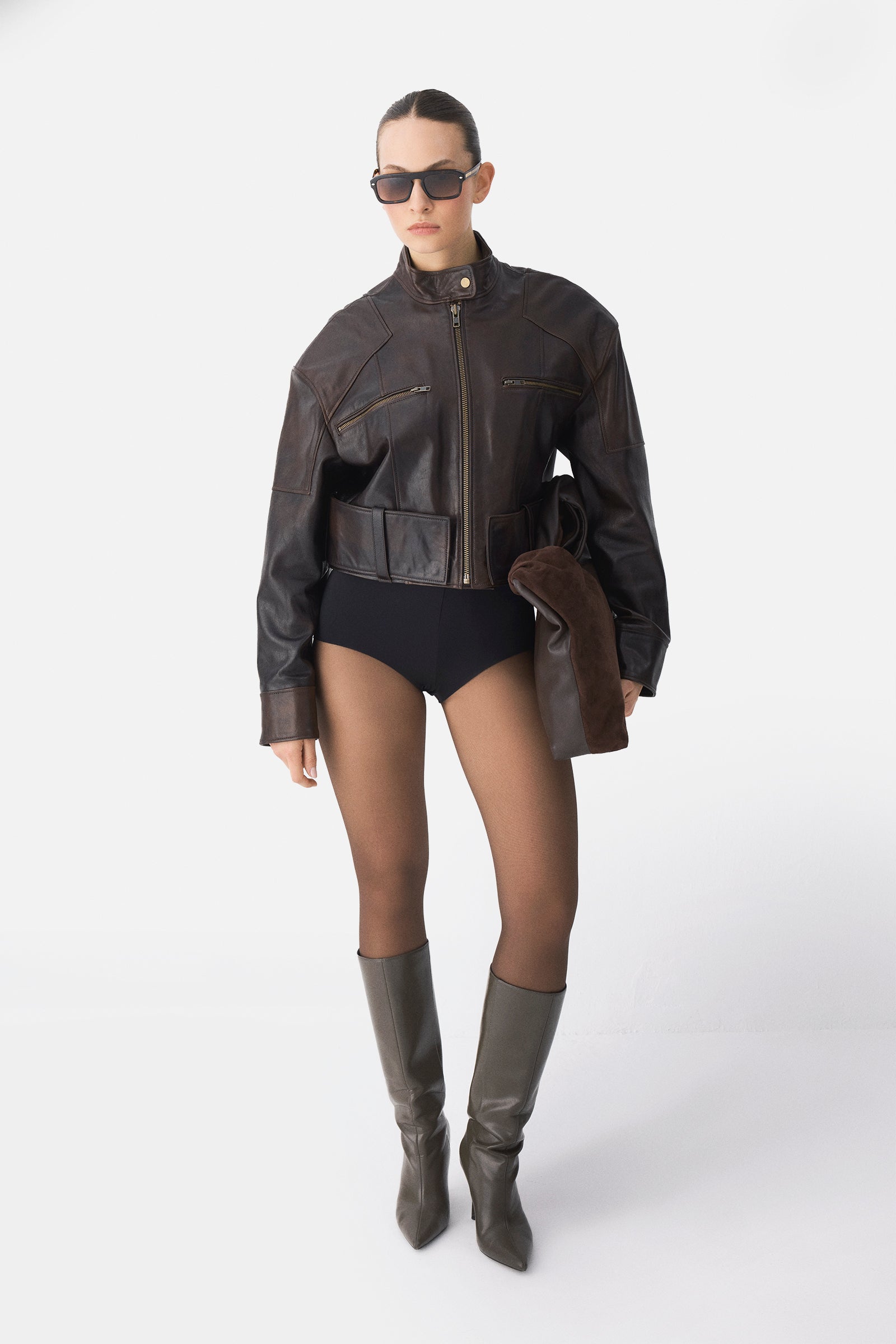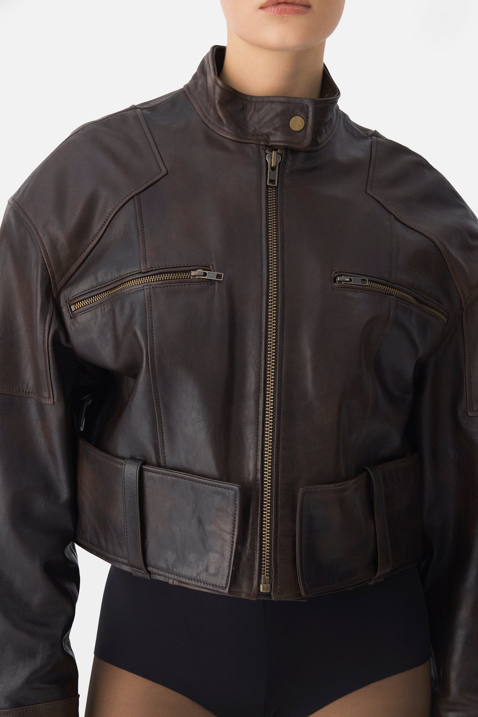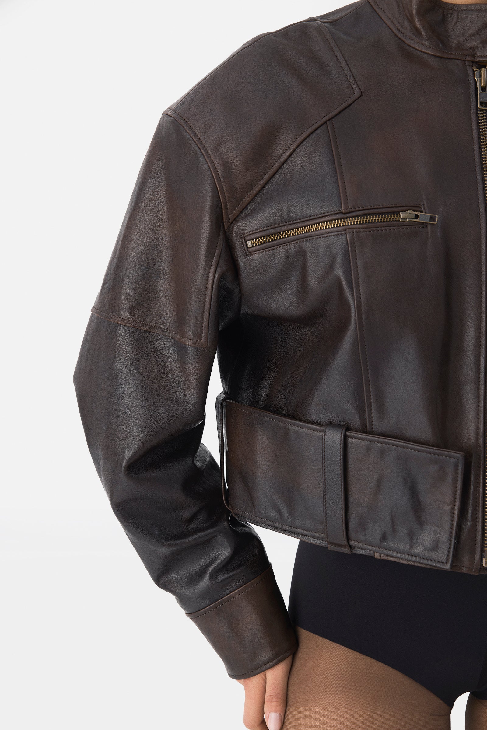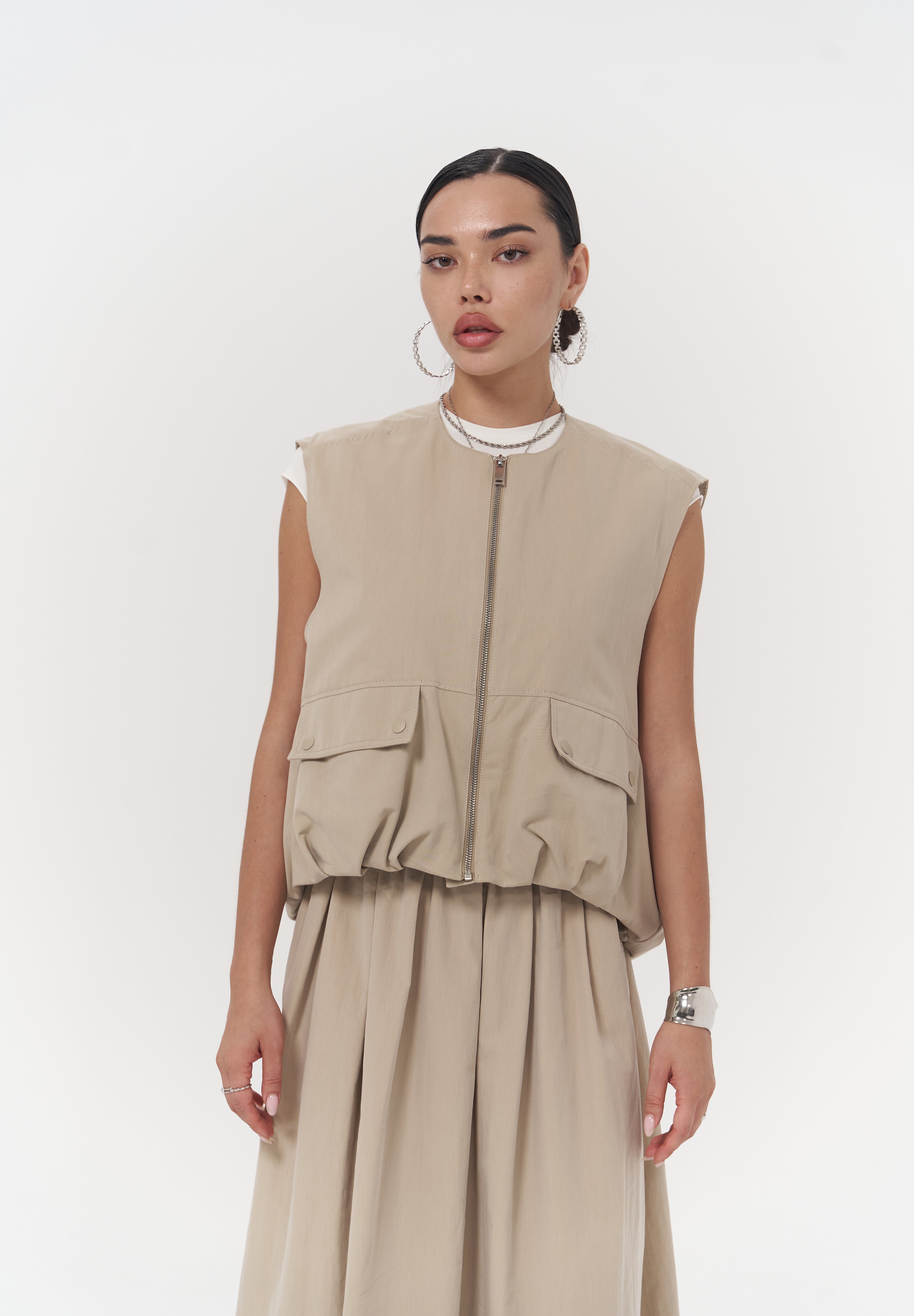 Oversized Funnel Collar Zip-Up Cropped Jacket