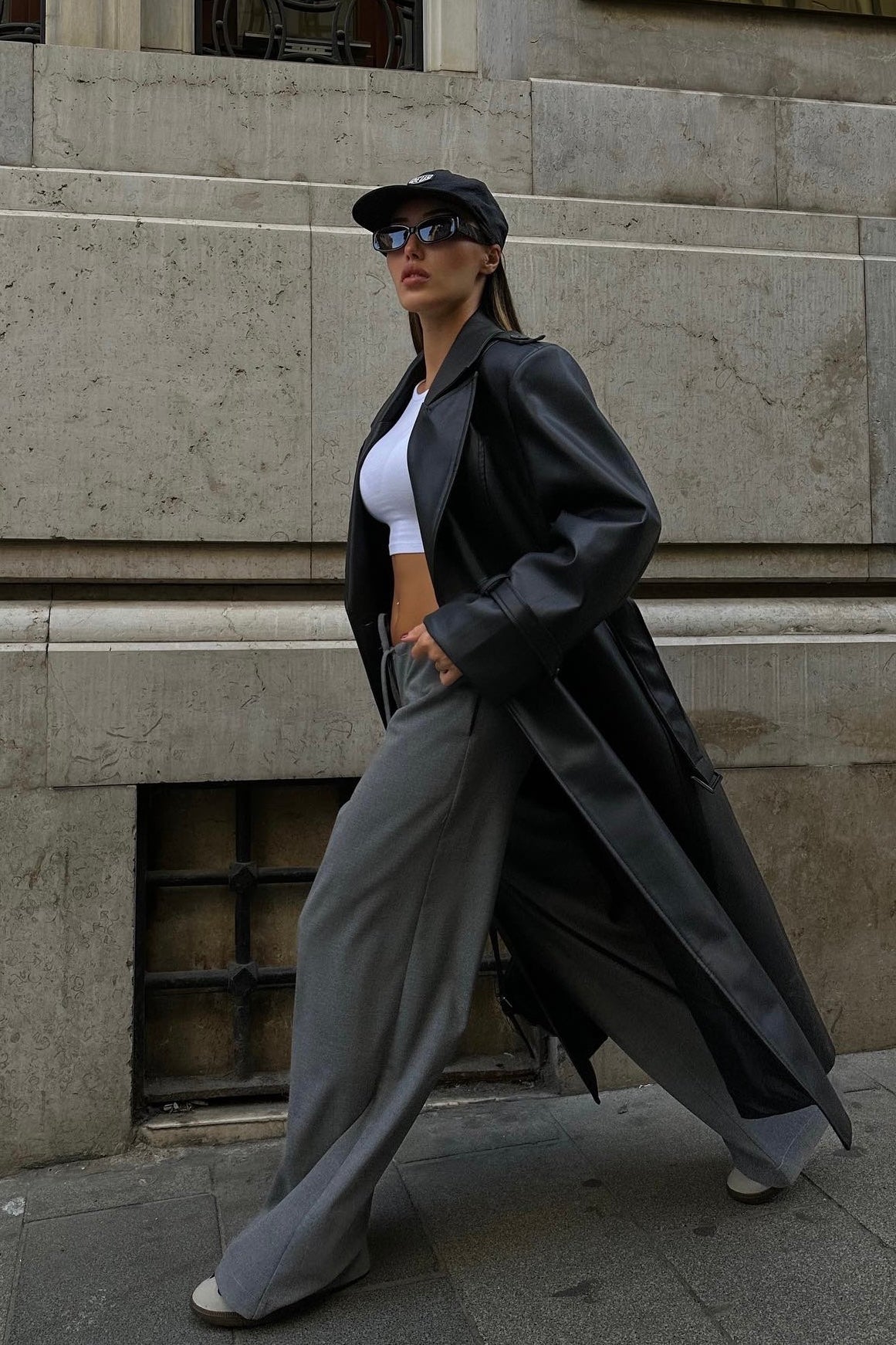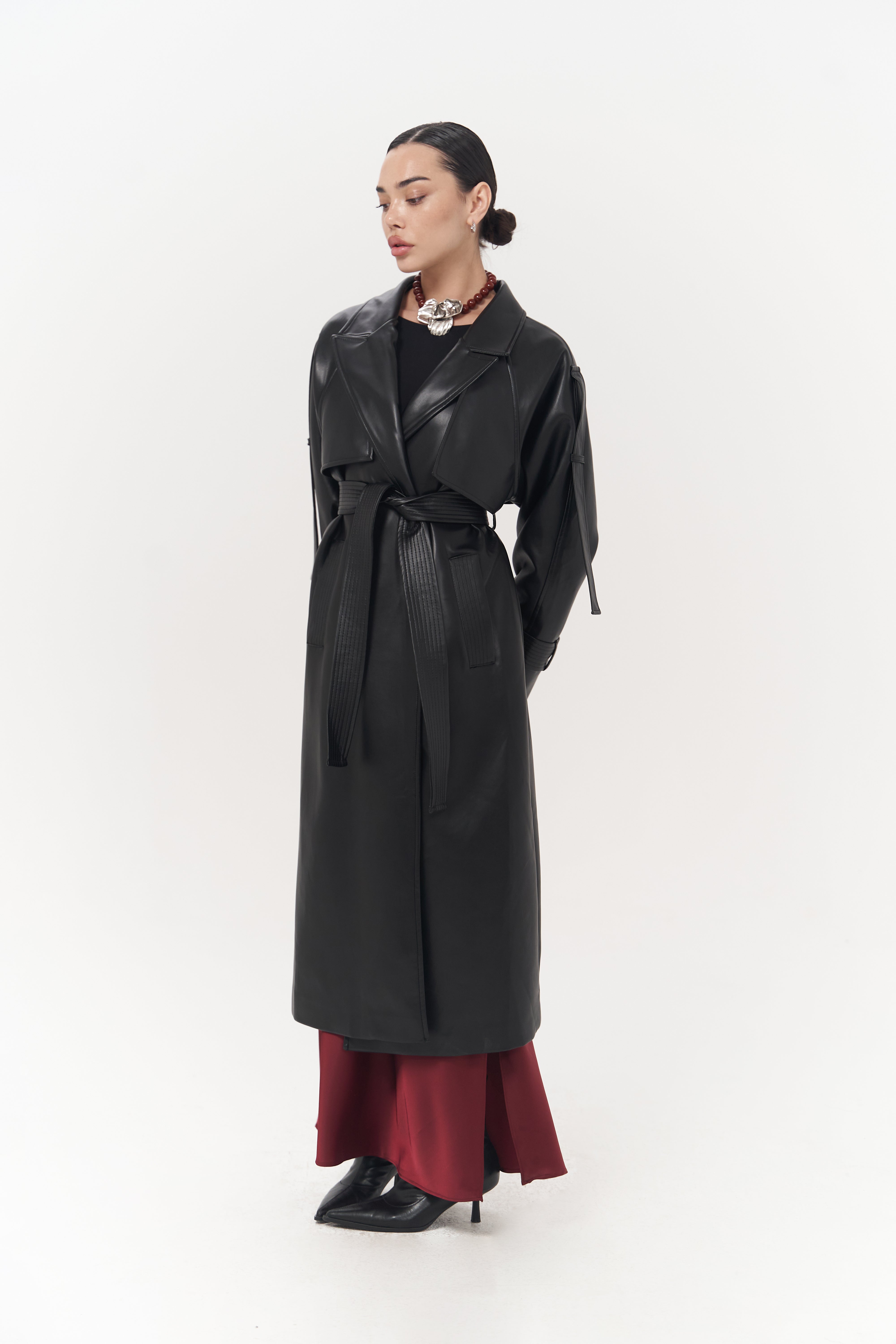 Belted Faux Leather Trench Coat