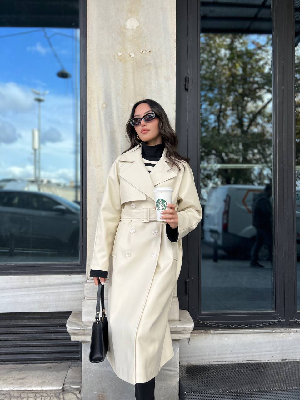 Faux Leather Trench Coat