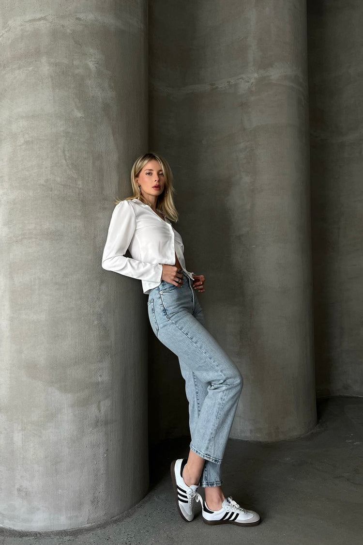 - Design Features: Classic five-pocket design with subtle distressing on the edges