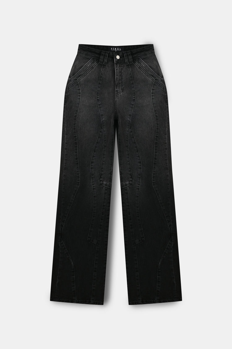 A sculpted wide-leg jean with clean contour seams for a sharp, elevated fit.