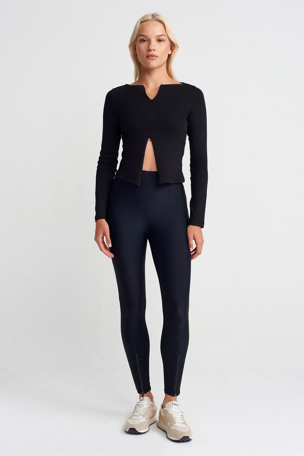 A refined essential designed to contour the body with a clean, modern finish. This long-sleeve top features a subtle front zipper and a softly sculpted silhouette, making it ideal for elevated everyday wear or styled for nights out.