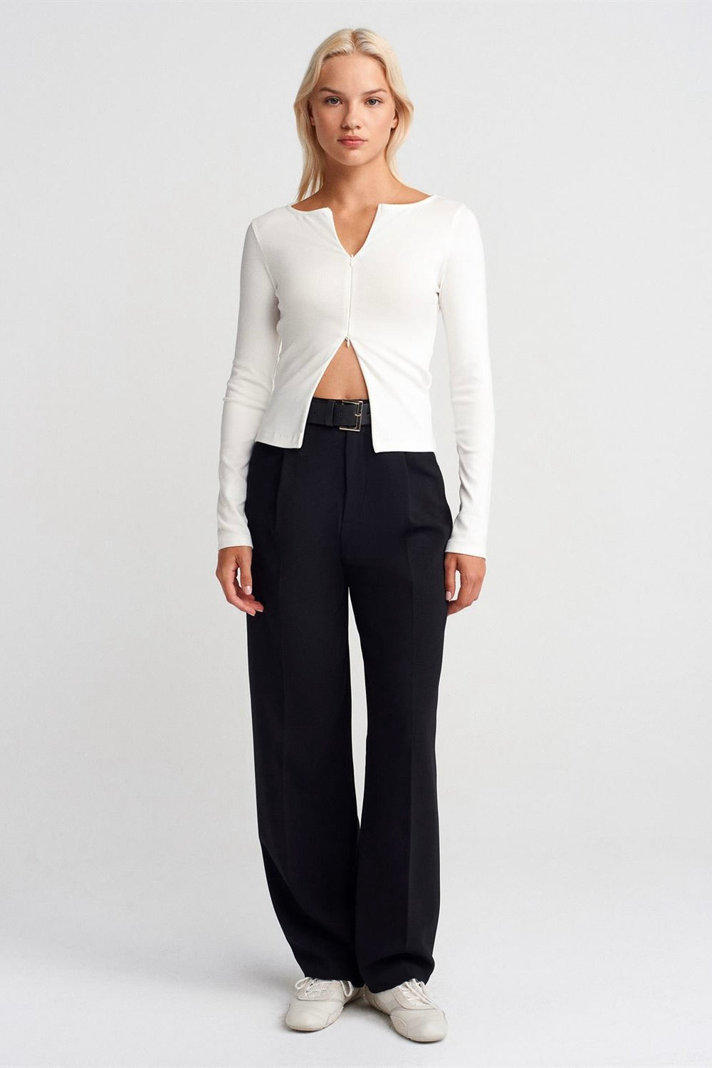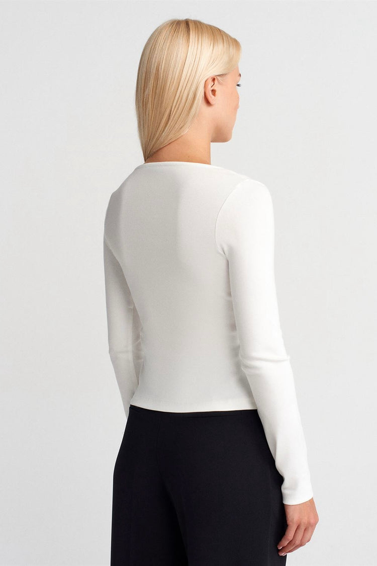 Zip Front Long Sleeve Top Cream
