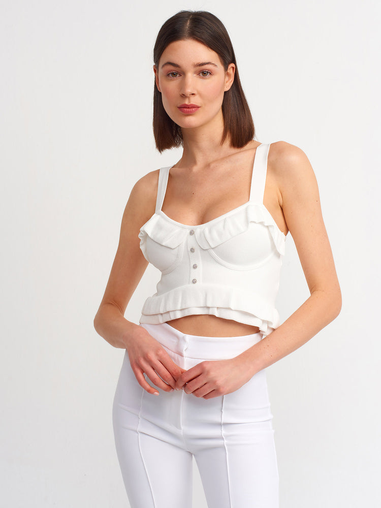 Crystal Buttons Crop Top White