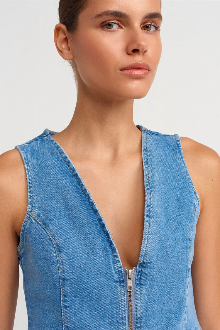 Zip Up Denim Vest Top