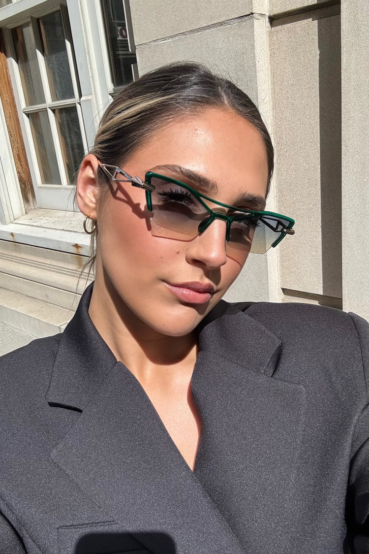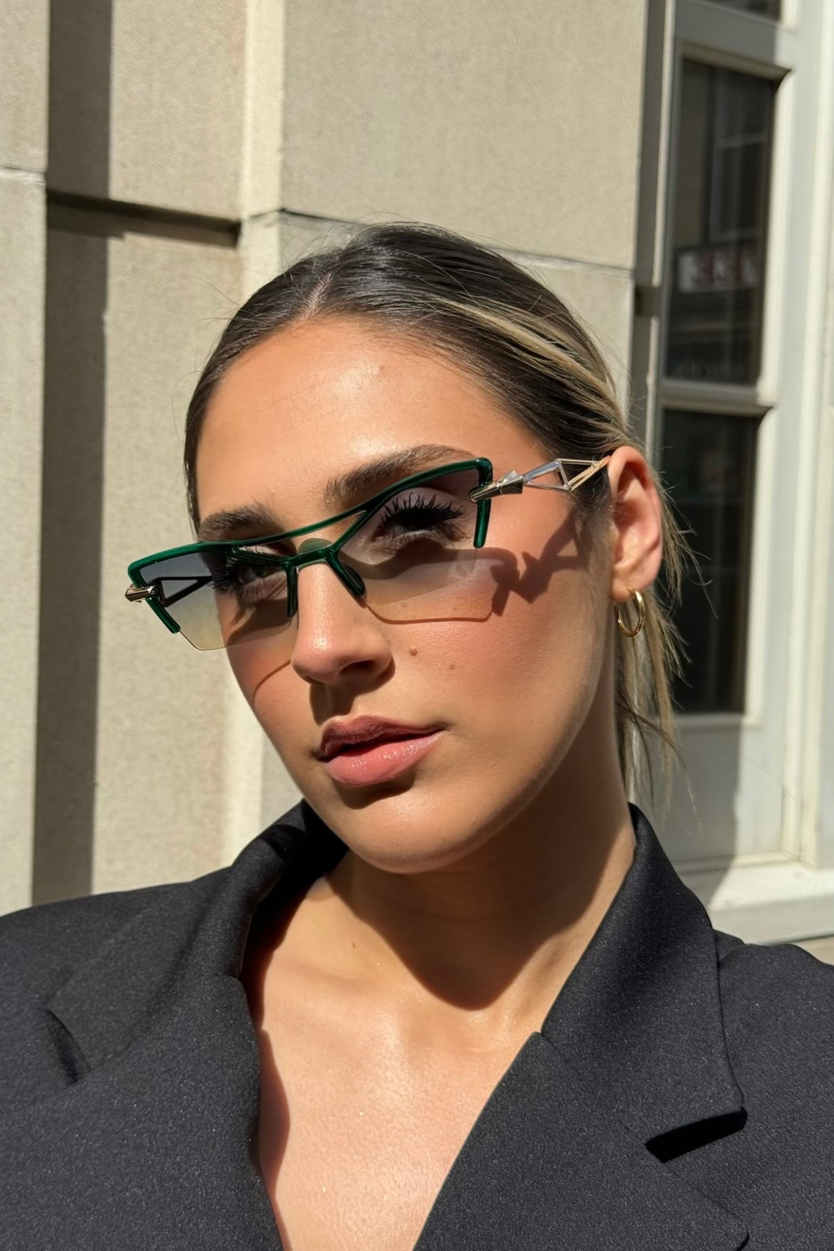 The Geneva is our semi-rimless frame featuring a unique metal accents at the temple. Finished with a gradient tinted UV-blocking lenses.